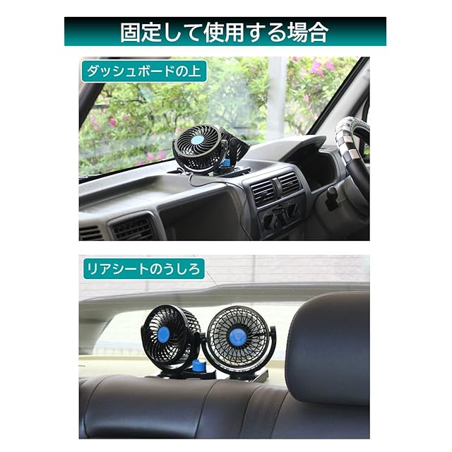 ●定格電圧:DC12V●消費電力(弱/強):約5.6W/約7W●首振り角度(水平/垂直):約180°/360°●取付仕様:ベルト/クッションテープ固定●材質:羽根/ガード…ポリプロピレン、本体…ABS