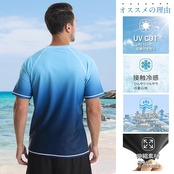 【素材構成】冷感素材を採用した涼シリーズの冷感ラッシュガード、着た瞬間ひんやり爽快!さらさらの肌触り、抜群の通気性で夏を涼しくお過ごしいただけます。伸縮性に優れており丈夫で破れにくい素材を採用、柔らかく、軽く、バランスの良い丈感で、とても動きやすく、吸汗・速乾素材は運動にも最適です!