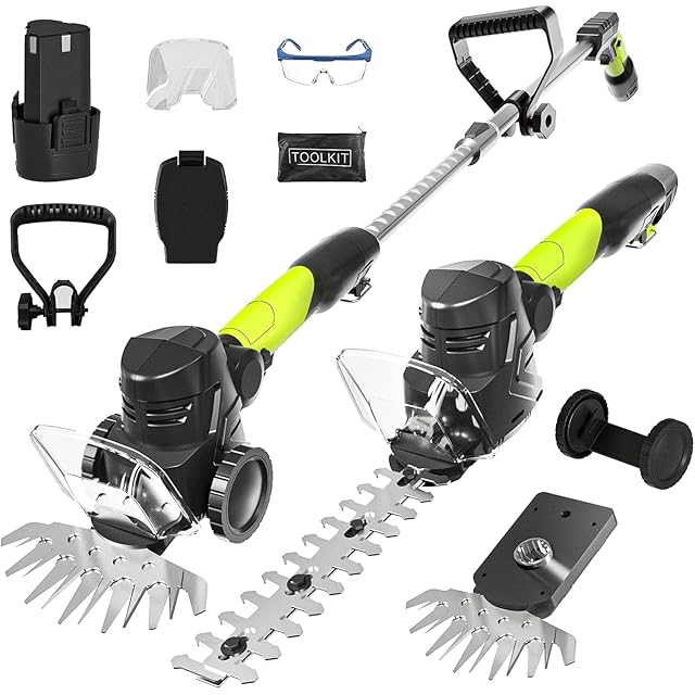 【1台4役充電式ヘッジトリマー・両刃駆動】1台で草刈り・剪定・高枝切り・除草が可能!最大切断長 230mmのヘッジトリマーブレードと最大剪定幅 170mm の芝生バリカンブレードが装備されています。工具不要の簡単設計で、トリマー⇄バリカンの切り替えが瞬時に完了、ヘッジトリマーブレードは植木剪定に最適、芝生バリカンブレードは広範囲除草が効率的になり、園芸剪定作業をより便利にすることができます。市販の130㎜刃を使うと比べ、刈幅が約20%アップし作業効率は倍増。電源/燃料の制約なしで、騒音・環境に優しく、操作も自由自在。製品を受け取った後、まずはパッケージ内の簡単でわかりやすい日本語の説明書をお読みいただくか、メイン画像に記載された詳細な設置ビデオを参考にしてください。