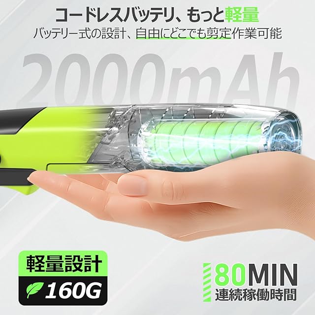 【長さ調整のためのプロ仕様高枝切りヘッジトリマー】伸縮自在のステンレス製ポール(収納時112cm→最大145.5cm)と業界最軽量クラスの160gバッテリーを搭載。補助ハンドルと滑り止めグリップで安定性抜群、高い位置の剪定も安全かつスムーズに作業可能。ポケットサイズのコンパクト設計ながら連続80分の長時間稼働を実現。充電式バッテリーでランニングコストも抑えられ、錆びにくいステンレス材質なので屋外保管も安心。軽量ボディと人間工学に基づいた設計で、女性やご年配の方でも疲れずに庭仕事を楽しめます。これ一本で、面倒だった高所作業がストレスフリーのガーデニングタイムに変わります!