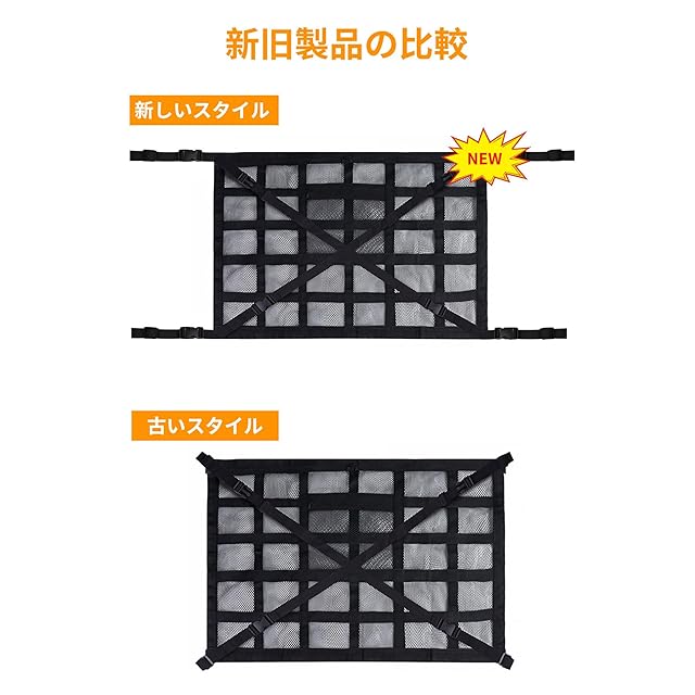【車 ネット垂れにくい】車の天井ネットは硬い素材で作られており、沈みにくいため、バックミラーの視界に影響を与えません。4つのウェビングを追加することで、取り付けがより便利で迅速になり、沈み防止能力がより優れています。