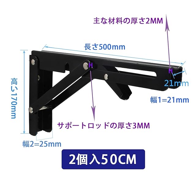 堅塁金物 棚受け金具 折畳み 40cm l字金具 折畳みテーブルヒンジ 壁掛けテーブル 折り畳み リクライニング金具 折りたたみ 収納 耐荷重100kg 黒 2個入