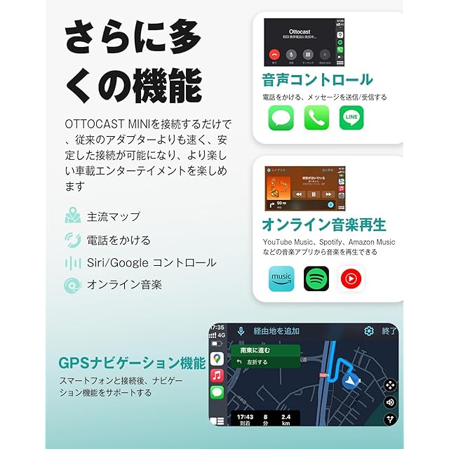 商品名:【公式】オットキャスト OTTOCAST MINI 2025最新 CarPlay&AndroidAutoをワイヤレス化 プラグ&プレイ 高い安定性 既存の有線CarPlay/Android Auto搭載車専用 スマホと接続後タイムカーナビ機能 bluetoothハンズフリー通話 アンドロイドオート&カープレイ無線化接続 レシーバ iPhone&アンドロードスマホ用 日本語取扱説明書付き