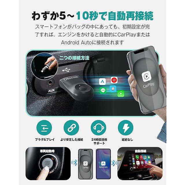 CarPlay・Android Auto対応のワイヤレスアダプター
