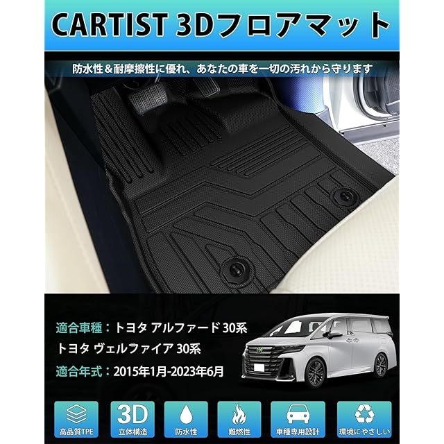 Cartist アルファード ヴェルファイア 30系 に適用 前期 後期 フロアマット 立体カーマット 3Dフロアマット Alphard VELLFIRE 30 2015-現行 TPE素材 車種専用設計 カスタムパーツ 防水 耐汚れ 取付簡単 運転席&助手席&センターパーツ&2列目 アクセサリー カー用品 4PCSセット
