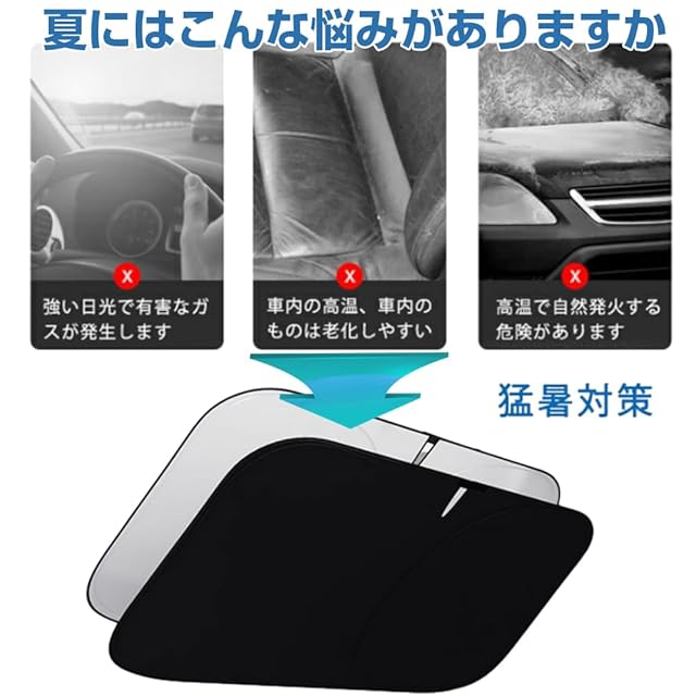 【猛暑対策・内装保護】内装劣化防止、ダメージや経年劣化を防ぎます。駐車時の大事な車を太陽光による損傷やハンドル焼け、ダッシュボードなどの樹脂部分の日焼けからしっかりご愛車を守ります。駐車の度に気持ちをより涼しくしてくれます。