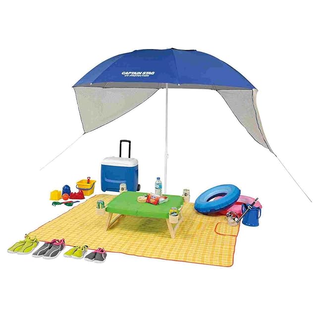 商品名:キャプテンスタッグ BBQ 海用 パラソル UVカット ウイング240cm ブルーM-1601
