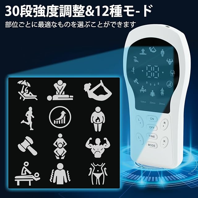 【優れた機能性】12種類のモードがあり、30段階の強度調節が可能。A/B 独立したデュアルチャンネル、各チャンネルの異なる強度設定で操作できます。個人使用だけでなく、家族とも一緒にしようできます。※初めて使用する場合、必ずレベル1に設定してご使用ください。