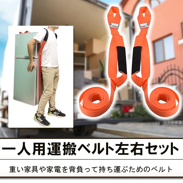 【引っ越し業者推奨】 運搬ベルト 一人用 引っ越し 大掃除 模様替え 家具家電 段ボール キャリーベルト 耐荷重約200kg 2本セット オレンジ