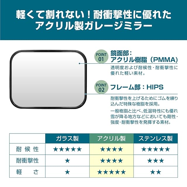 ◆耐候性に優れたアクリル製ミラーで軽くて割れにくい