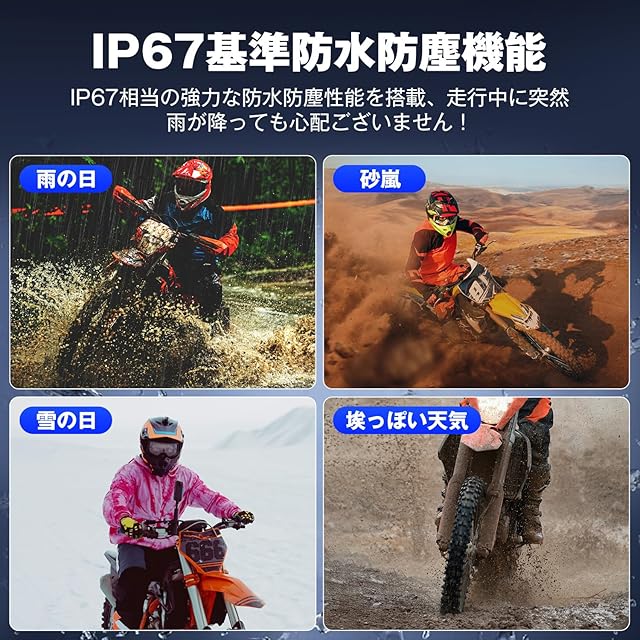 【2025最新バージョン】バイクインカムは最新のBluetooth5.3を搭載しております。速い接続速度、安定した出力と高い互換性を重ね備え、市販されている他のインカムより遥かに上回っています。また、バッテリー残量、インタコムモードなどが一目で分かるLEDディスプレイもこのインカムの特徴であり、個性と高いコスパを持ったハイスペックのモデルです。