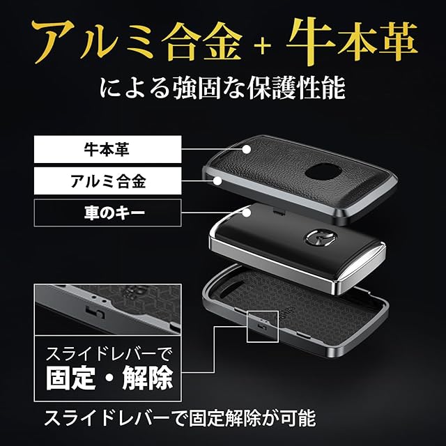 【商品概要】 マツダ車専用の [本革+アルミ合金] のスマートキー対応キーケースです。車種専用設計で本体にぴったりフィットし、強固に全面を保護します。純正同様に操作ボタンが備わっており、スムーズに操作可能です。