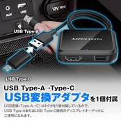【USB変換アダプタ(USB-Type-A→Type-C)を1個付属】 USB変換(Type-A→C)コネクタを1個付属しているので、USB Type-AまたはUSB Type-C接続のディスプレイオーディオにご使用になれます。