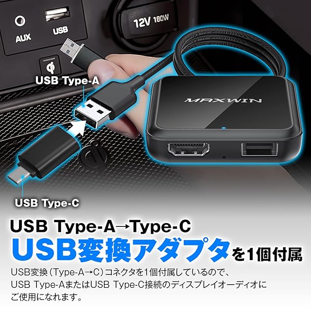 商品名:MAXWIN ワイヤレス CarPlay AndroidAuto アダプター HDMI入力アダプター 有線CarPlay/AndroidAutoをワイヤレス化 HDMI USB 変換 車載 ディスプレイオーディオ対応 DA-HD01A