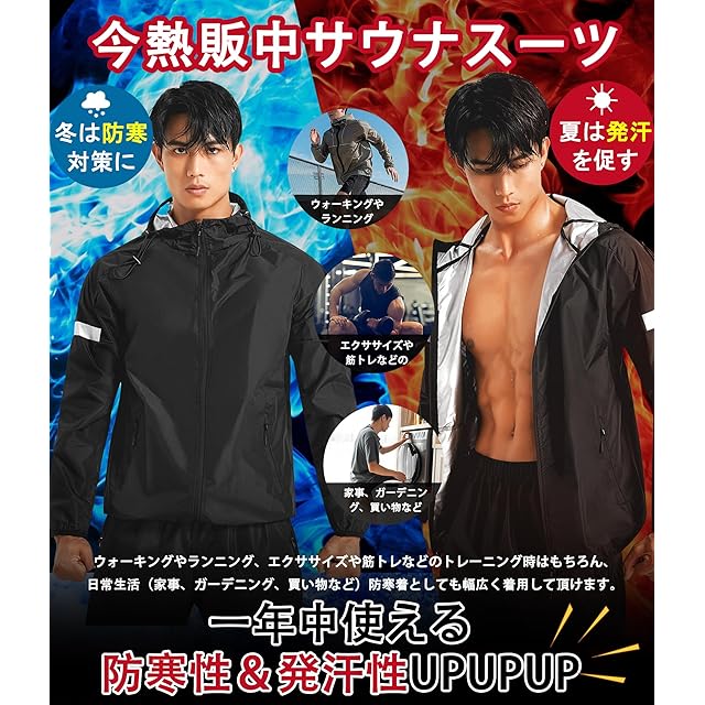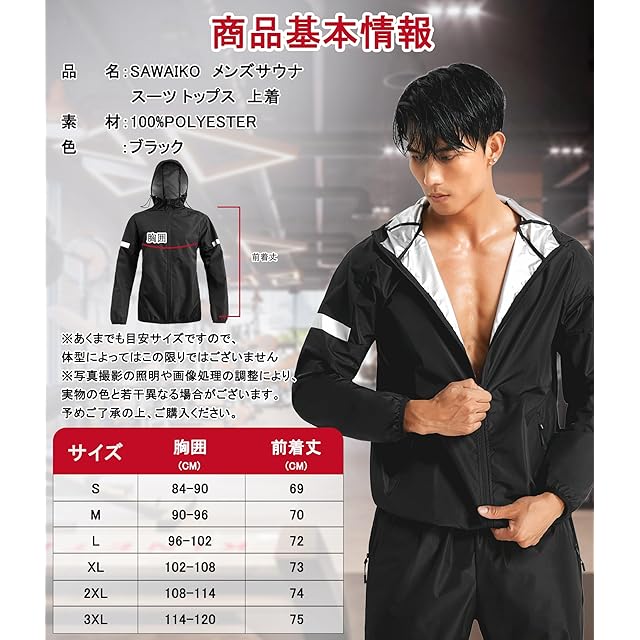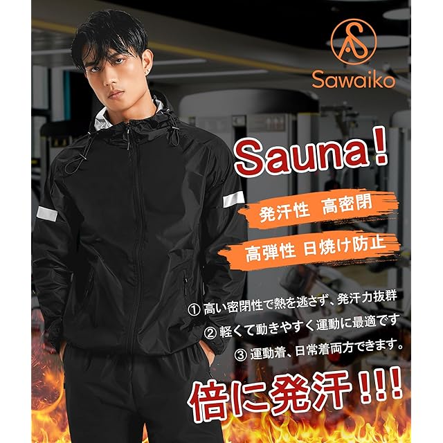 商品名:[Sawaiko] サウナスーツ 人気 運動着 倍発汗 最強減量 冬用 レディース メンズ 美ボディ 蓄熱 保温力アップ 新陳代謝 ランニングウェア ストレッチ 強力発汗 スポーツウェア 男女兼用 部屋着(ブラック/トップス,L)