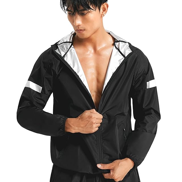 [Sawaiko] サウナスーツ 人気 運動着 倍発汗 最強減量 冬用 レディース メンズ 美ボディ 蓄熱 保温力アップ 新陳代謝 ランニングウェア ストレッチ 強力発汗 スポーツウェア 男女兼用 部屋着(ブラック/トップス,L)