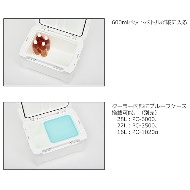 真空モデルは断熱層の隙間を隅々までウレタンを充填 ぶつかりやすい角部分を保護するプロテクター付き(ZSS、SU) 持ち運びに便利なショルダーベルト付き(ZSS、SU) クーラー内部にプルーフケース搭載可能(別売)(28L:PC-6000、22L:PC-3500、16L:PC-1020α)