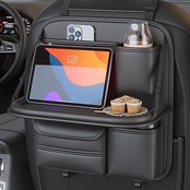 【折りたたみダイニングテーブル】この車用シートバックポケットは、折りたたみダイニングテーブルが付いていて、車の中でタブレットを使ったり、食事をしたりするのに便利です。テーブルを使わない時は折りたためて、使い勝手が良いです。
