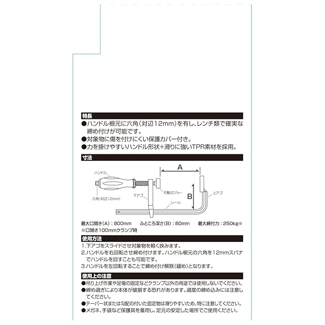 商品名:SK11(エスケー11) L型クランプ 口開き900mm 締付力250kg LS-900N