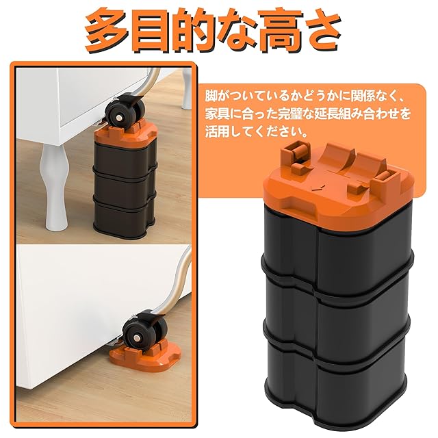 【腰痛や頭痛とはもうさようなら】腰痛や頭痛にさよならを言いましょう。当社の家具リフト&ローラーキットを使用すれば、家具を自分で移動できます。重い家具や家電を移動するために非常に強壮である必要はもうありません。誰でもできます。