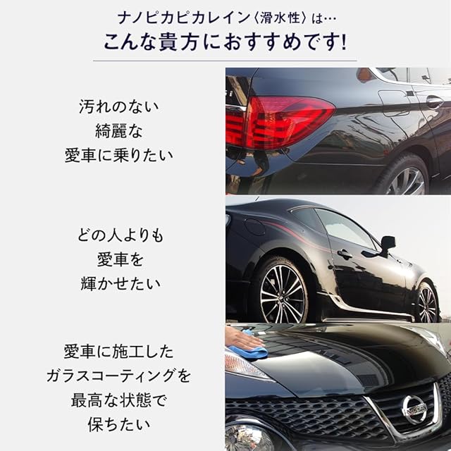ナノピカピカレイン滑水性は上質な艶・光沢で愛車を美しくキープ!ガラス被膜の保護にも◎