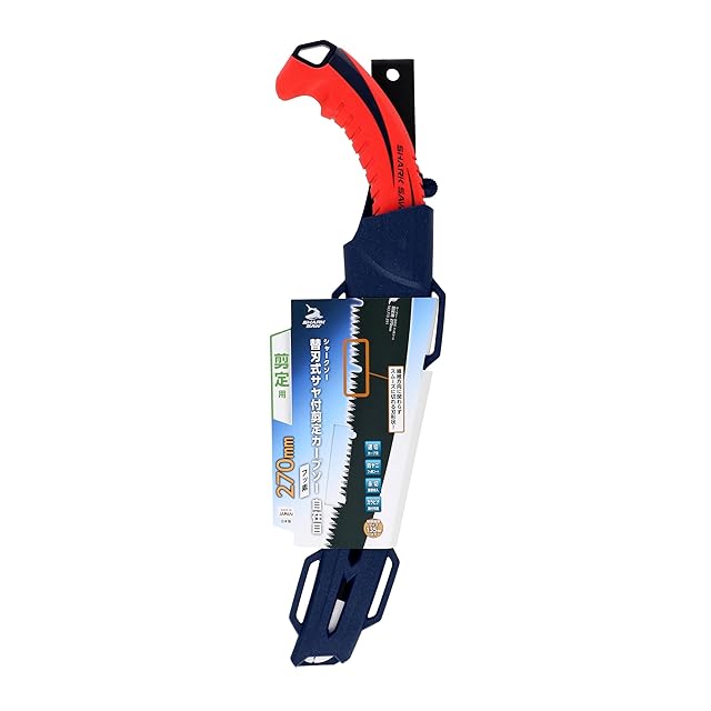 商品名:高儀(Takagi) シャークソー 替刃式 サヤ付 剪定 カーブソー 自在目 フッ素 270mm 日本製 のこぎり ノコギリ 鋸 片刃 速く切れる 防ヤニ 全方向 切断 園芸 庭木 果樹 永切 カラビナ 取り付け可能