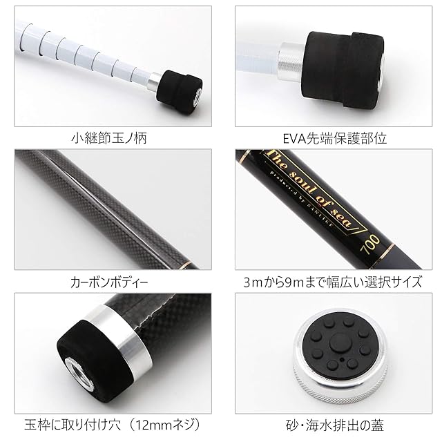 柄材質:90%カーボン 仕舞寸法:76cm 継数:9本 先径:12.8mm 元径:37.7mm