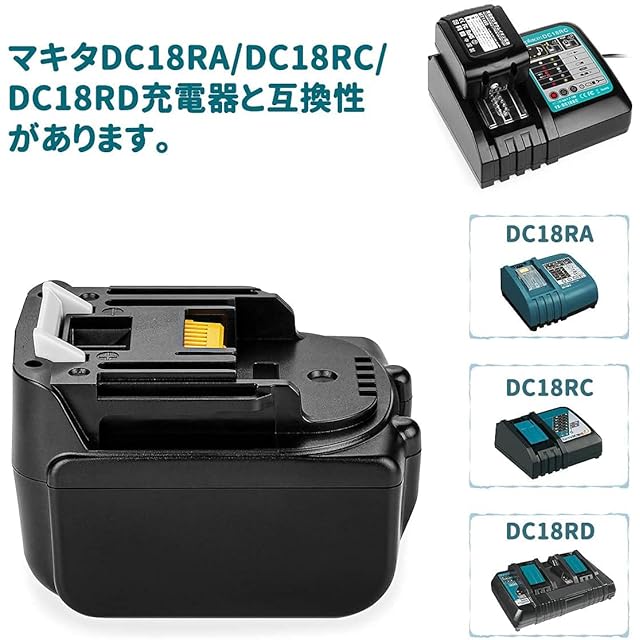 マキタ電動工具バッテリーBL1430B、BL1460B、BL1430、BL1440、BL1450、BL1460、194065-3、194066-1など対応。対応充電器:DC18RC、DC18RA、DC18RDなど。対応機種:PT350D、V140D 、UB142D 、VC340D、DA340D 、HR162D 、TW152D 、UC121D 、MUH351D 、TD134D、TD136、TD133D、TD132D、TD131D、TD135D 、FS440D、FR440D 、TP130D 、DF445D 、DF440D 、LC540D 、GA400D 、HP440D 、KS52 、TS130D 、TL060D 、CS540D 、VR340D、VR440D 、SS540D 、JS160D 、ST110D、ST420D、ST120Dなど。
