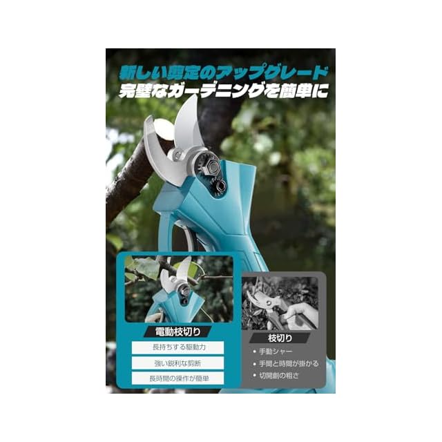 商品名:【プロの園芸サポート】Dorlink 電動ハサミ 充電式 剪定はさみ ブラシレスモーター 30mm直径切断 4段階開き角度調整可能 剪定バサミ 電動ばさみ 剪定鋏 枝切り 18V大容量バッテリー×2 4枚刃 軽量 剪定鋏 庭木/果樹/園芸 日本語取扱説明書付き