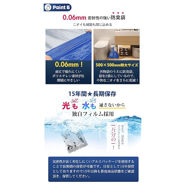【万能緊急用】: 災害用トイレ、災害時や断水時に備えて、半永久的に保存可能な防災グッズ。非常時に安心できる必需品を提供し、あらゆる状況に対応します。