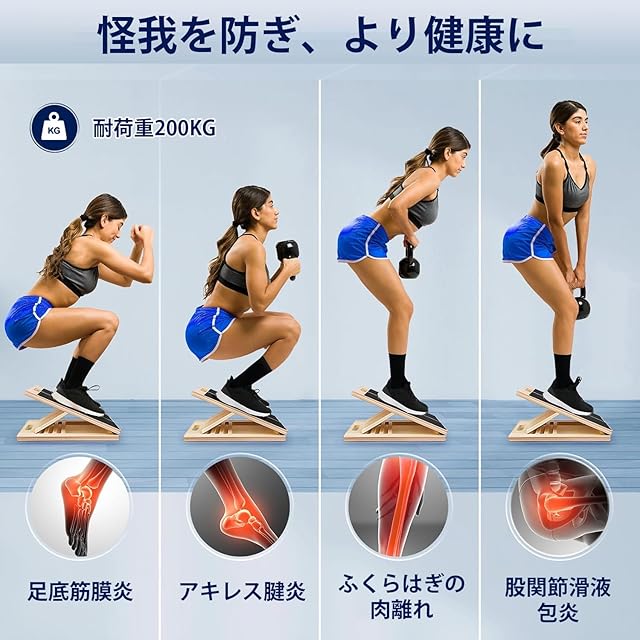 【回復をサポート】このアキレス腱伸ばし器具はコアの強さ、機敏性、柔軟性、可動性、反応性を向上させます。足底筋膜炎、アキレス腱炎、膝蓋腱炎、脛骨痛、ふくらはぎの肉離れ、足首捻挫、股関節痛、およびふくらはぎの損傷からの回復をサポートします。