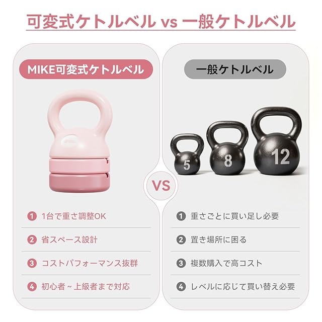 MIKE SPORT 可変式ケトルベル 3in1 初心者向け 5LB 8LB 12LB プレート調節可能 自宅トレーニングジム おしゃれ 筋トレ ダイエット器具