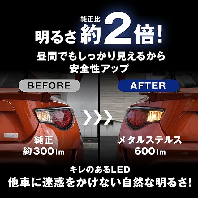 【2025年最新モデル 抵抗内蔵LEDウインカー】 あなたの車のウィンカーを次世代LEDにアップグレードしませんか?fcl.が提供する最新モデルは、究極のステルス性を追求した「メタルステルス」と、純正比約7.5倍の圧倒的な明るさを誇る「ハイルーメン」の2タイプをご用意。どちらのタイプも、LED化の際に発生しがちなハイフラ現象の対策が不要です。抵抗を内蔵しているため、面倒な追加作業は一切なく、バルブを交換するだけで簡単にLED化が完了します。こだわりの濃いアンバー発色は、点灯時に白っぽくなることなく、本来の美しい光を放ちます。これにより、視認性が飛躍的に向上し、夜間や悪天候時の安全運転を強力にサポート。さらに、車のドレスアップ効果も抜群です。エフシーエルのLEDウインカーは、取付の手間を最小限に抑えつつ、純正球からのスムーズなLED化を実現する設計。愛車の安全性とデザイン性を高めたい方へおすすめです。