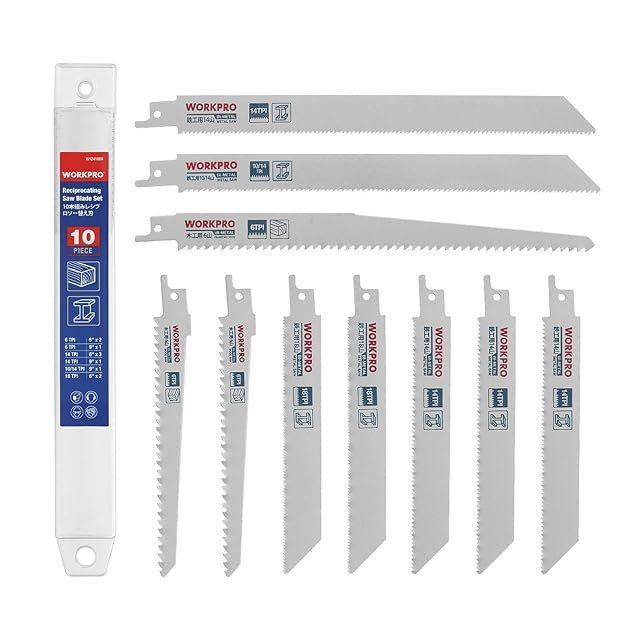 WORKPRO レシプロソー替刃 電気のこぎり替え刃 鉄工・木工用 金属 ステンレス 非鉄金属 プラスチックパイプ 収納ケース付き 10点组