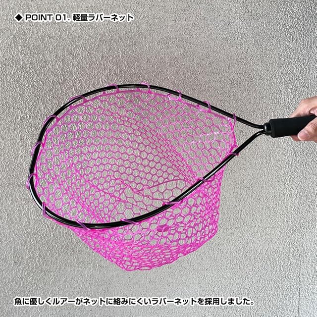 商品名:プロックス(PROX) ラバーランディングネット ショートグリップ 12型/枠赤/ネットクリア PX70412CR ランディングネット 【魚に優しいラバーネット】