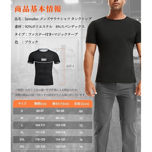 商品名:[Sawaiko] 背中 汗対策 サウナシャツ メンズ サウナスーツ 着るサウナ スポーツインナー メンズ 加圧 tシャツ (ブラック, L)