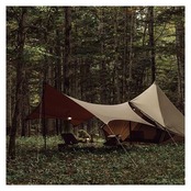 大胆に開口した大型フロントパネルが特徴の2-4人用のsynthetic素材を採用したシェルター。フロントに3本のサブポールを入れることにより、前方の空間を大きく確保し、圧迫感のないリビングスペースを実現しました。