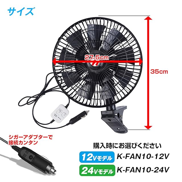 商品タイプ:K-FAN10 12V車用(首振り機能付き)