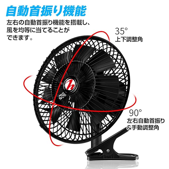MAXWIN 扇風機 車載 首振り 風量2段階 クリップ式 ファン 16羽根 11インチ 左右 90° 角度 風量 12V サーキュレーター 省エネ 循環 K-FAN10-12V 黒
