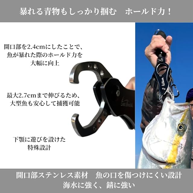 ✅【高強度・耐久性リニューアル】トリガーを耐腐食性・耐久性高いアルミ合金にグレードアップ。ワイヤー入りカラビナコードで高強度・耐荷量を強化したフィッシュグリップ!開口部分は防錆に優れたステンレス素材