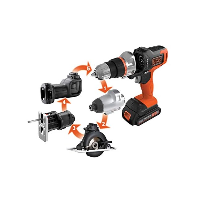 商品名:【オンライン限定商品】ブラックアンドデッカー(BLACK+DECKER) 18V マルチツール EVO185E1 コードレス 電動工具 DIY用 インパクトドライバー・ドリルドライバー・丸ノコ・ジグソー・レシプロソーを1台で ビット・バッテリー 付き