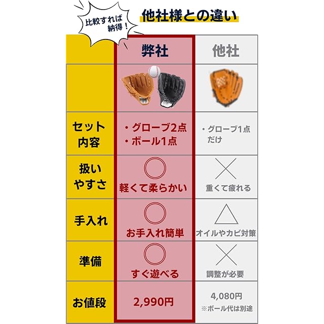 【軽量で柔らかい野球用グラブ・ミット】当店の野球用グラブ・ミットは軽量ですので遊んでいても疲れにくいです。また、柔らかく手馴染みが良いため初心者でもキャッチしやすい作りに仕上がっています。