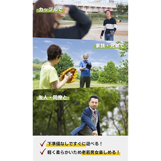 PLUSGOODS キャッチボールセット大人用 グローブ2つ 野球ボール付き カップル 野球セット (右投げ×2点)