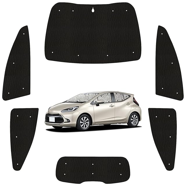 <p>【商品内容】<br>1.フロントガラス1枚<br>2.サイドドアガラス2枚<br>3.バックドアガラス2枚<br>4.リアガラス1枚<br><br>【適合車種】<br>★アクア MXPK10/11/15/16型 MXPK10 MXPK11 MXPK15 MXPK16<br>※他グレードも上記適合車種とおなじガラス形状であれば装着可能です。<br>※フロントサンシェードを取り付けの際、運転席・助手席に装備されているサンバイザーで固定すると便利です。<br><br></p> <p>1.本商品は取り付け不可以外のクレーム、返品等お受けできません。<br> 2.走行中は視界のさまたげになりますので絶対にご使用にならないでください。 <br> 3.本商品は簡易吸盤で装着するためガラス面と隙間がでる場合がございます。<br> ※完全に光りを遮断、外から見えなくなるわけではありませんのでご注意ください。 <br> 4.吸盤がガラス面につきにくい時は表面に水分を含ませると効果的です。<br> 5 スモークフィルム等を装着している場合は吸盤の脱着に細心の注意をはらってください。<br> ※吸盤のつまみ部分を引き上げると空気が入り簡単に取り外せます。<br> 6.装着の際は、必ずアルミ面を外側にしてください。黒を外にすると黒フィルムが溶けて、剥離します。<br> 7.シームレスライトは1.0cm~1.5cm程度の縫製誤差が生じます。若干の隙間が発生する場合もございますので予めご了承下さい。<br> 8.フロントガラスは角度がありサンシェードがたわみやすくなっております。上下に引っぱりながらご着用ください。 <br><br><br>【シームレスサンシェード、サイドシェード、シームレスライトの取り付けに関してのご注意】<br>本製品は車両の窓枠より一回り大きめのサイズで生産しております。<br>理由として、近年のお車は、窓ガラスと内装にわずかな隙間があり、<br>サンシェードをその隙間に潜り込ませて装着するケースが多くなったからです。<br><br>また、取り付けに関しても、先端側に対して、押し寄せながら設置することもあり、<br>始点を決めると、どこかがダブつき、一部を上から被せるように装着する場合もございます。<br>ガラス形状よりオフセットして生産した場合、至る所に光漏れや大きな隙間が生じるリスクがあるため<br>仕様としてこのような形状で生産されております。<br><br>また、これらの方法以外で、ドアを開いてからサンシェードを配置してドアを閉めることでシェードを挟み込み<br>固定する場合もございます。挟み込みや覆い被せる装着は、シェードがくの字に変形し、吸盤が外れやすくなります。<br>裁断誤差、車両の個体差もあることから、柔軟な設置ができるよう考慮されておりますので<br>商品の特性上、ご理解の上ご注文いただけますようお願い申し上げます。</p>