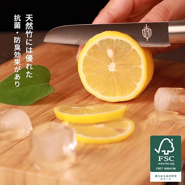 ❸材質:天然竹。適切に管理されたFSC認証を受けている竹素材のみを採用(FSC100%)。優れた抗菌・防臭効果あり、木製のまな板よりばい菌が繁殖しません。また、水切れが良く、乾きが早いので黒カビも発生しにくく、肉、魚類をカットしても色・臭いが残りづらいです。いつでも清潔!きれいにお使い頂けます。