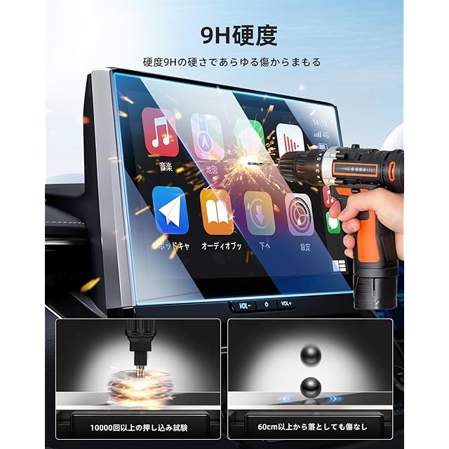 【9H高硬度ガラスフィルム】カローラクロス 保護フィルムには9H硬度素材を採用し、ガラスを強化することで外界からの衝撃(鍵や硬いものなど)を吸収し、映像へのダメージを最小限に抑えます。 貼った事で傷が付かない安心感で生まれました。