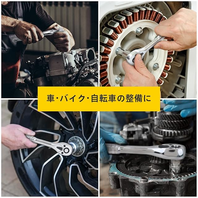 豊富なセット:3/8と1/4差込角ソケットセットで、よく使われるサイズを備えて、日常の車のメンテナンス、バイク整備などに十分。