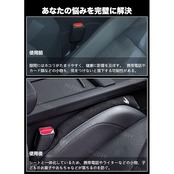 【使い方は簡単】:運転席、助手席のシートベルト口に挟むだけの簡単装着。シートデザインの統一感を損なわずに、シートとセンターコンソールの隙間を埋める。
