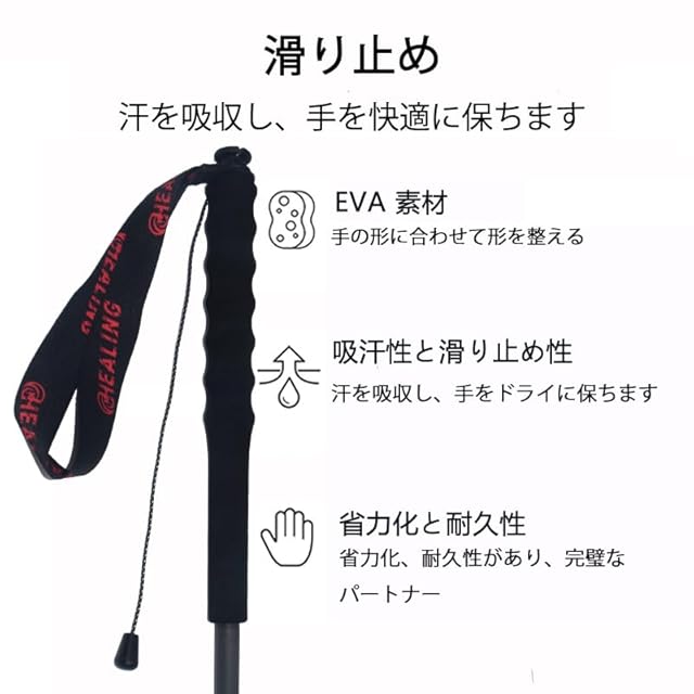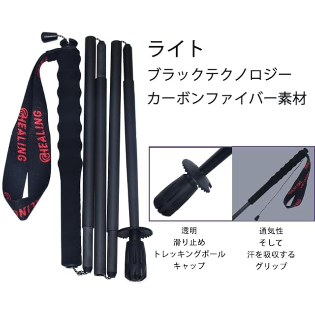 製品仕様 <br> パラメータ詳細<br> 展開時の長さ:110cm/120cm/130cm ±5mm<br> 折り畳み時の長さ:26cm/28cm/30cm ±5mm<br> 重量:110g/120g/130g ±3g<br> パイプ径::12mm ±0.1mm<br> 杖のデザイン:5段折り畳み式<br> 先端の材質:タングステンスチール+強化ナイロン(PA6+GF30)<br> 接続部の材質:PE編みロープ<br> グリップの材質:黒色高弾性EVA<br> ハンドルの形状:ストレートグリップ<br> シャフトの材質:T800高強度カーボンファイバーUD面<br> 使用用途:トレイルランニング、登山、ハイキング<br> 【付属品】<br><br> バッグ*1、スタッフキャップ*2<br><br> ---------------------------------------------------------------------------------------------------------------------------------- 【 KHEALING 】はアウトドア用品を専門の老舗で、17年間世界中で売れ、世界各国のユーザーから広く認められ、オフラインで200000を販売しています!!製品の品質に対する責任は、私たちのオフィスの目標です!! 【KHEALING】アウトドアスポーツブランドは信頼できます!!<br><br> 非常に軽量で、組み立ても簡単で、垂直に下ろしてコードを引くだけ。伸縮幅は広いので、山で使う時以外はリュックに引っ掛けたり、荷物に余裕があれば中に入れて持ち歩く事も余裕で出来ます。アウトドアでは、装備の快適性と信頼性が重要です。<br><br> 軽量で、グリップ感もよい。登り坂でも下り坂でも活躍しました。ストラップに手な通してからそのままグリップを握る下りや荷物が重い時でも両手に持ったポ-ルて体が前につんのめるのを抑えてバランスが取りやすくなるため脚の筋肉が疲れにくい。<br><br> ポールの石突きに付属品を装着することにより、地面に突いたときの安定感が高いです。不使用時はトレッキングポールを収納バッグに取り付けますと、歩行の邪魔にならず、使いたい時にすぐに取り外せます。<br><br> チップとゴムカバーは長さを合わせ、丈夫で耐久性があるため、簡単に外れることはない。感触が柔らかく、握りがしっかりしていて、私たちの登山杖はあなたの征服ごとに非凡な握り体験を提供しています。