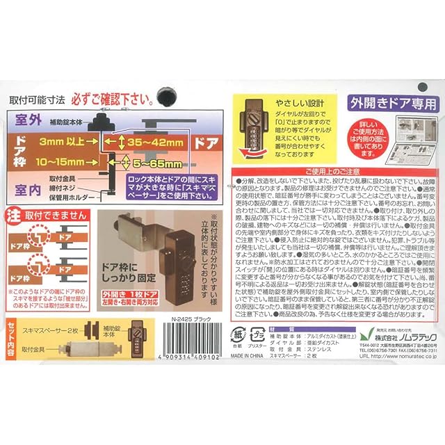 商品名:ノムラテック どあロックガード ダイヤルタイプ ブラック N-2425
